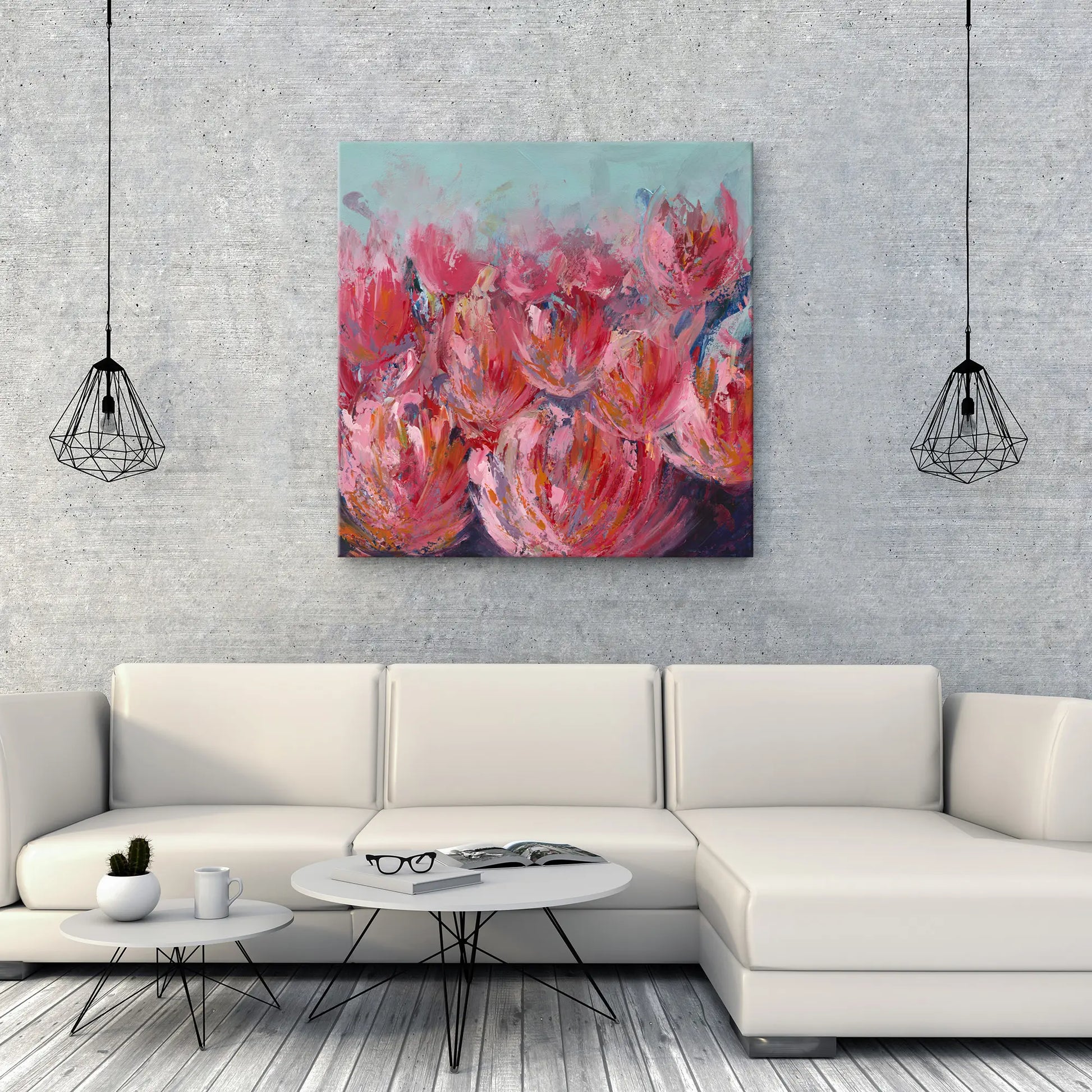 Painted in acrylic on canvas and measuring 60 x 60cm, Floral Bliss is the kind of piece that lights up a room. It’s all about joy, connection, and celebrating those little unpredictable sparks of beauty.