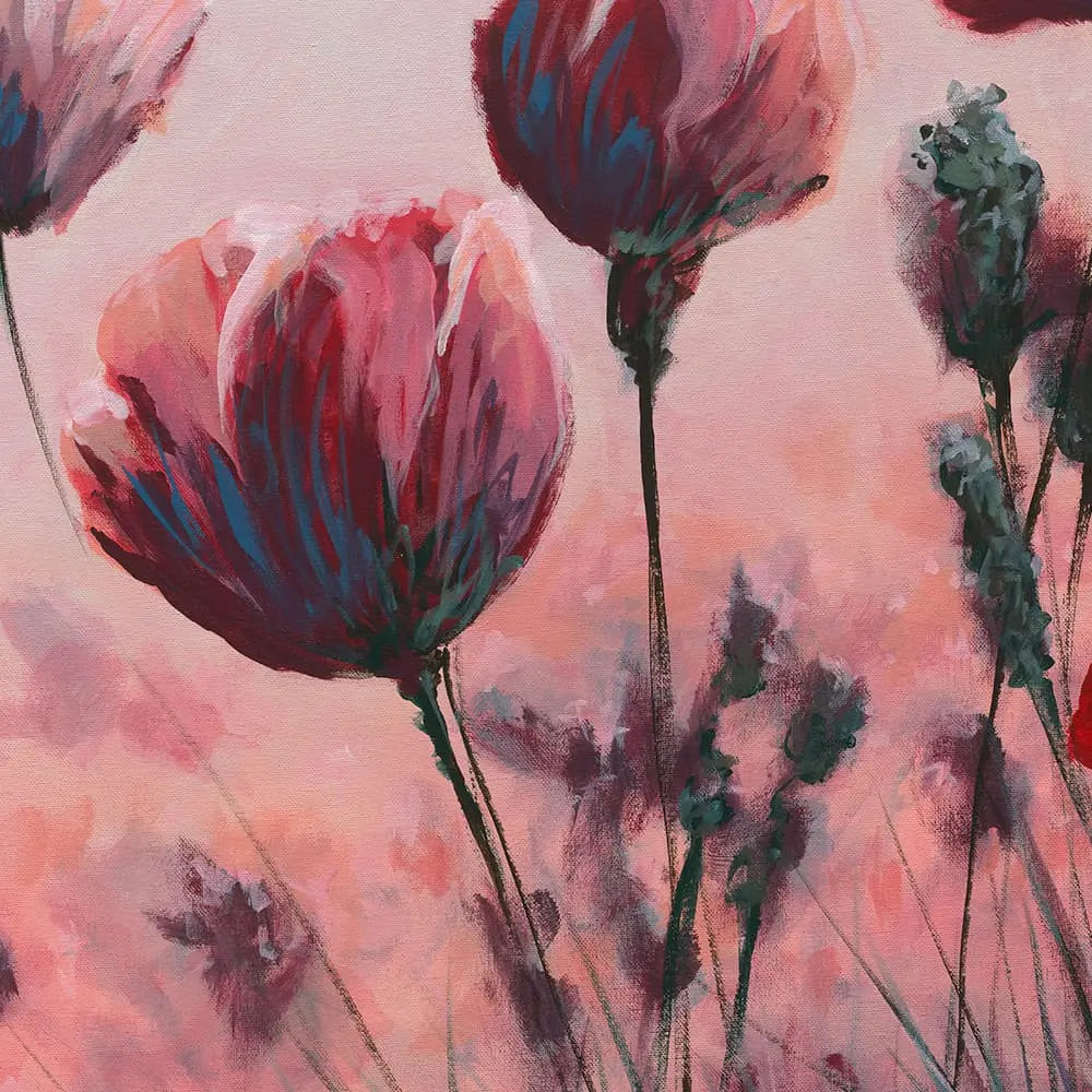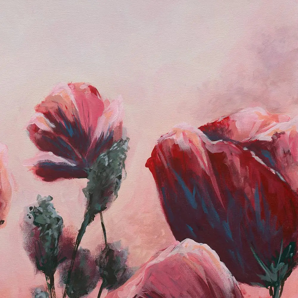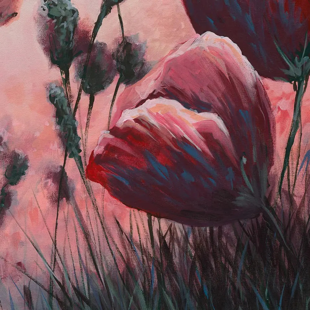 I love working with acrylics. I build up the layers which creates a depth in the colours, and I can really play around with texture between layers. The flowers feel alive, like they’re gently swaying in the breeze, and that was so important when creating this.